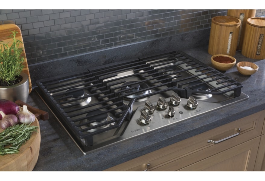 GE Profile 30 Inch Natural Gas Cooktop with 4 Sealed Burners Installs Over Oven ADA Compliant Electronic Ignition Sealed Cooktop Burners Downdraft Exhaust Heavy-duty dishwasher safe. Whether cooking or searing this GE Profile cooktop can cook a variety of meals. GE Profile 30-in 5 Burners Stainless Steel Gas Cooktop.