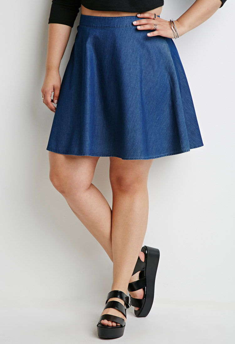 Forever 21 Plus Size Denim Skater Skirt In Dark Denim Blue Lyst